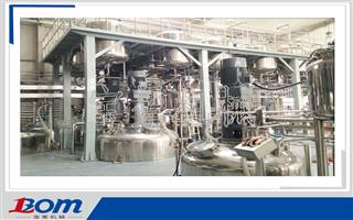 大型雙行星真空攪拌機是寶冕企業針對鋰電池漿料、各種膠黏劑以及新能源行業對于高粘度物料攪拌需要提高攪拌效率和均勻度等基礎上所研制的一種非標化程度高的強力混合攪拌工業級設備。由低速攪拌器、高速分散器、刮壁刮底和測溫探頭等組成,具有快速的混合、反應、分散、溶解,捏合作用,特別適用于固-液、液-液相的分散、混合;根據物料粘度的不同,設計不同的行星輪傳動比,扭矩變化區間大,是膠黏劑、硅膠、鋰電池漿料等行業首選攪拌混合產品;同時設備帶刮壁刮底功能,無死角,無殘留,清洗方便,配套獨特的控制系統,操作安全便捷;設備可另選配擠出裝置,實現攪拌、出料一體化作業。對于有溫度要求的物料,可配套合適的模溫機,獨立操作,溫度控制精度高。